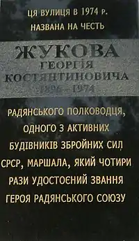 ![]() | Жукову Георгію Костянтиновичу | вул. Маршала Жукова, 45 | |