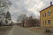 | Трамваї | Т 23, 33 (по Алматинській вулиці) |