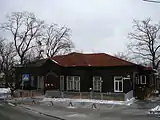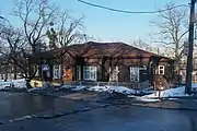 Дерев'яна споруда комплексу Бактеріологічного інституту, Київ, вул. Миколи Амосова, 16, зараз аптека