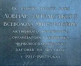 Анотаційна дошка В. М. Довнар-Запольському (буд. № 11, знищена в червні 2015 року[6])