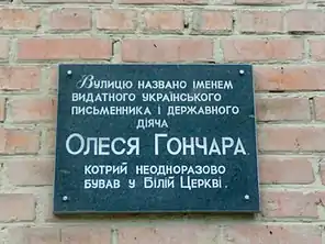 ![]() Пам'ятна дошка Олесю Гончару Пам'ятна дошка Олесю Гончару | |