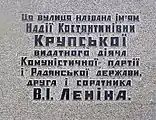 - Крупської вул. // Вулиці Києва. Довідник / упоряд. А. М. Сигалов та ін. — К. : Реклама, 1975. — С. 88.