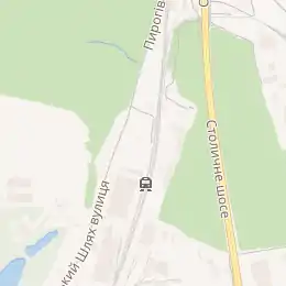 | Зупинки громадського транспорту | «Пирогів», «АТП-1007», «Київський пивоваренний завод „Славутич“», «Цементний завод», «Червонопрапорна вулиця», «Завод залізобетонних конструкцій», «СТО», «Залізничний переїзд» |
