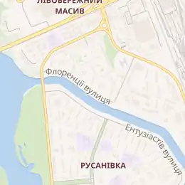 | Найближчі залізничні станції | з. п. Київська Русанівка |