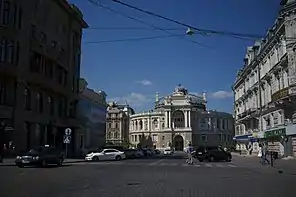 ![]() Вигляд на Одеський оперний театр з перетину Дериібасівської та Рішельєвської Вигляд на Одеський оперний театр з перетину Дериібасівської та Рішельєвської | |