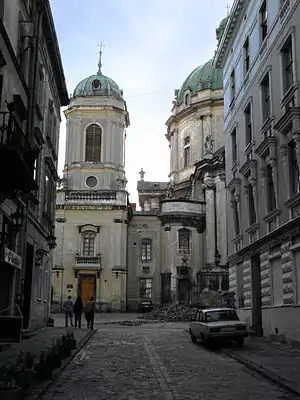 ![]() Вигляд на Домініканський костел з вулиці Ставропігійської Вигляд на Домініканський костел з вулиці Ставропігійської | |