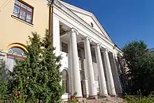 - Архієрейський будинок побудований в 1820 — 1826 роках. Автор проекту невідомий, фасад виконано в стилі класицизму. Триповерхові ризаліти обмежують двоповерхову центральну частину будівлі, прикрашену колонадою доричного ордера. На другому поверсі між ризалітами розташована тераса. Цоколь і, частково, перший поверх виділені рустовкою.
