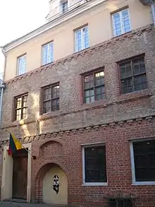 У сусідньому триповерховій будівлі (Šv. Jono g. 5), трьома своїми корпусами навколишньому закритий прямокутний двір, вже у 1639 році знаходилась аптека Георгія Шульца (Jerzy Szulc). При нашестя військ московського царя та козаків Золотаренко в 1655 році будинок був спалений, а його власник загинув. У 1781 році руїни придбав аптекар Кошик (Koszyk) та заново відбудував будівлю. Нинішній вигляд будинку надав наприкінці XIX століття а купець Мойсей Антокольський, перебудував його за проектом архітектора Олексія Полозова. Після смерті купця (1902) будинок дістався його спадкоємцям; частиною будівлі володів художник Лев Антокольський. На початку XX століття а в цьому будинку працювали винний та книжковий магазини, у часи радянської окупації — невеликий комісійний магазин, потім магазинчик періодичній пресі. Після реставрації з 1996 а в північному корпусі розташовувався соросівський Фонд відкритої Литви, а нині — Інститут Литви (Lietuvos institutas).