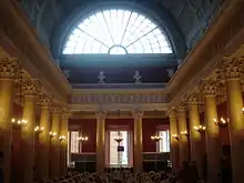 На початку XIX століття а проект реконструкції аули підготував архітектор Міхал Шульц, однак він не був до кінця реалізований. Після смерті Шульца новий проект реконструкції розробив Кароль Подчашінскій. У нижньому поверсі містилися склади, над ними — зал з коринфськими колонами (капітелі скульптора Казимира Єльського), з розписом, що імітує ліпнину (136 квадратних кесонів з розетками; художник Юзеф Гіларі Гловацький), та алегоричними фігурами на зводах. Після скасування університету (1832) аулу змінювала призначення. Коли вона стала актовим залом першої гімназії, був змінений її декор.