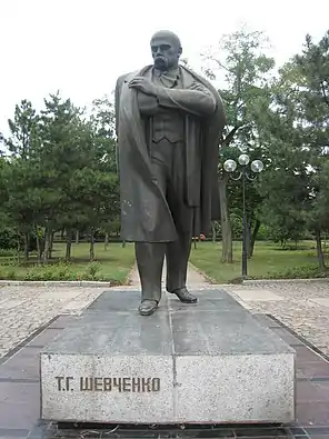 - На початку вулиці Шевченка розбитий гарний однойменний сквер. У 1958 році тут було встановлено пам'ятник великому українському поетові, революціонеру-демократу Т. Г. Шевченко — триметрова фігура з бетону на кам'яному п'єдесталі. Автор — скульптор І. Диба. У 1985 році цей пам'ятник знову відкрили після реставрації.