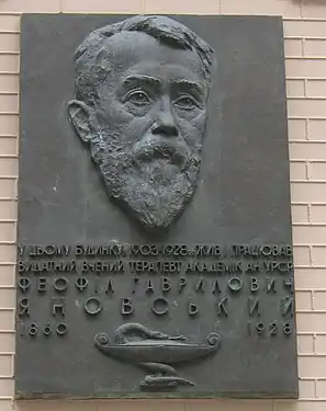| 13 б | Феофілові Яновському | Встановлена на будинку де з 1903 по 1928 рік він жив і працював; бронза, скульптор Олександр Скобликов, архітектор Анатолій Ігнащенко | ![]() |