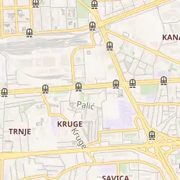 Вараждинський шлях (хорв. Varaždinska cesta), Московська вулиця (хорв. Moskovska ulica), Белградська вулиця (хорв. Beogradska ulica), Вулиця пролетарських бригад (хорв. Ulica proleterskih brigada) |