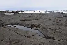 Базальтова лава типа пахоехое (pāhoehoe), яка утворює гладкі потоки, в Ісландії має назву геллуграун (helluhraun).[Islandsbok 1] Вона утворює досить рівні поверхні, по яким (після вистигання) досить легко пройти.