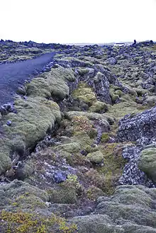 Менш текуча лава типу аа (ʻaʻā), ісландська назва апалгаун (apalhraun), після вистигання утворює ламану, гостру, колючу поверхню, що робить піші прогулянки важкими та повільними.