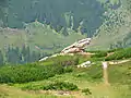 На південному заході від Вухатого Каменя — вершина Смотрича, на північному сході (в котловині) — Дзембронські водоспади.