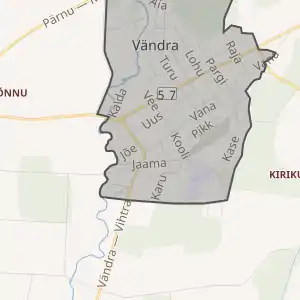 Містечко Вяндра оточено землями волості Вяндра (ест. Vändra vald), але до складу самої волості не входить.
