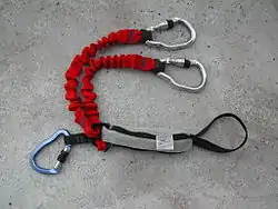 Багато років сходження по віа феррата відбувались з використанням простого спорядження — карабінів, закріплених з коротким відрізком мотузки або стропи приєднані до верхньої або нижньої обв'язки, через припущення, що далеко на віа феррата не впасти[2]. Однак поступово стало очевидно, що таке спорядження не дозволяє уникати серйозних травм, головним чином тому, що для абсорбування енергії падіння є лише короткий шмат мотузки, часто значно коротший за відстань між двома точками закріплення кабелю безпеки — тобто фактор ривка може перевищити 2, що створює сили, які ні тіло людини, ні спорядження часто не можуть подолати, і це веде до серйозних травм. Для виправлення цього були розроблені ряд засобів, що працюють як поглиначі шоку та прогресивні гальма, метою яких є більш ефективне між у короткої мотузки гасіння енергії, щоб зберегти цілим скелелаза і спорядження.