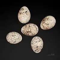 Гніздо влаштовує на поверхні землі. Відкладає 3-6 яєць, що мають характерний для родини рисунок у вигляді рисок.