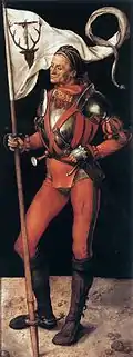 На лівій стулці зображений Георгій Змієборець з драконом біля ніг, на правій — святий Євстахій зі штандартом, на якому зображений олень. На святих одяг лицарів-сучасників художника. Манускрипт XVII ст. відзначає, що дві ці дошки були написані в 1498 році, і моделями для святих були брати Паумгартнер: Стефан для св. Георгія і Лукас для св. Євстахія. Це найбільш раннє задокументоване надання рисам небожителя схожості з особою донатора.