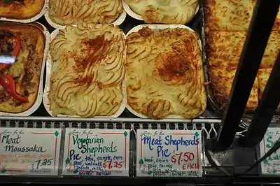 - Вегетаріанська версія пирога, іноді звана «пирогом вівчарки», може бути приготовлена за допомогою сої або інших замінників м'яса (тофу, кукурудза), а також з начинкою з бобових, таких, як горох або сочевиця.