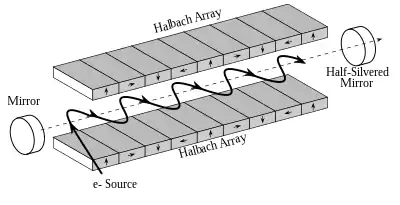 Вігглер, поміщений у резонатор (наприклад, два паралельних дзеркала резонатора Фабрі — Перо), — найпростіший варіант лазера на вільних електронах.