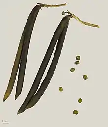 Плід — довгий вузький біб, циліндричної форми, опушений, вузький і довгий.