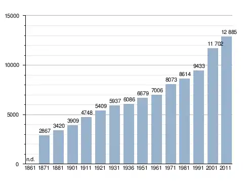 Станом на 31 грудня 2014 року в муніципалітеті офіційно проживало 910 іноземців з 41 країни, серед них 406 громадян країн Євросоюзу та 25 громадян України.[4]