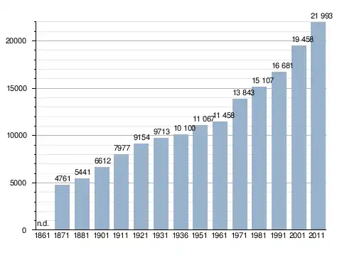 Станом на 31 грудня 2014 року в муніципалітеті офіційно проживало 1747 іноземців з 73 країн, серед них 792 громадяни країн Євросоюзу та 16 громадян України.[4]