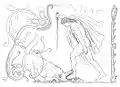 «Відар пронизує Фенріра, утримуючи його щелепи», W. G. Collingwood, 1908 рік.