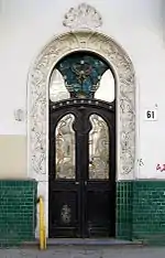Сецесійні двері колишнього прибуткового будинку скульптора, архітектора Каспера Юліана Драневича (1906; вул. Бандери, 61)