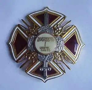 - На медальйоні напис у три рядки: «Доблесть і честь».