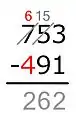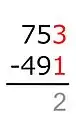 - У стовпчику з двох чисел, якщо нижнє число написане червоним, таке написання зазвичай вказує на те, що нижнє число треба відняти від верхнього, а різницю треба записати нижче під лінією. Зазвичай це використовують при розрахунках.