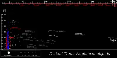 Отже, передбачається, що відсутність значної гравітаційної взаємодії із зовнішніми планетами створює розширену зовнішню групу, що починається десь між Седною (перигелій 76 а. о.) і традиційними об'єктами розсіяного диска, такими як Ерида (перигелій 37 а. о.)[10]. Глибоким оглядом екліптики Ерида визначена як об'єкт розсіяного диска.