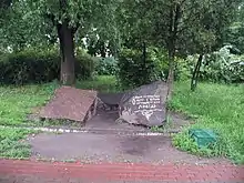 Знак на місці витоку струмка — пам'ятка «Виток річки Либідь»