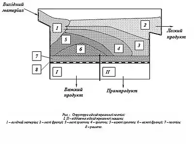 В.п. виконує важливу функцію селективного вивантаження дрібних зерен важкого компонента через решето.[1]