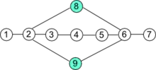 У теорії графів, відстань між двома вершинами графу — це кількість ребер у найкоротшому шляху, що сполучає їх. Це поняття також відоме як геодезична відстань.[1] Зауважте, що може існувати більш ніж один найкоротший шлях між двома вершинами.[2] Якщо нема шляху, що поєднував би дві вершини, тобто, якщо вони належать до різних компонент зв'язності, тоді ми кажемо, що відстань нескінченна.