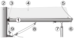 Відтяжка шкотового кута (позначена цифрою 6)