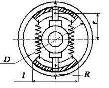 - r — відстань від осі валу до центру тяжіння колодки;
