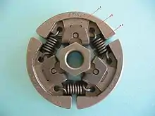 Ведучою частиною в цих муфтах є маточина з колодками, котрі переміщуються радіально. Веденою частиною є барабан, до ободу якого колодки притискаються відцентровими силами R. Крім конструкцій відцентрових муфт з радіальним колодками можуть використовуватись муфти з поворотними колодками.