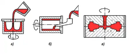 На відміну від відцентрового, застосовують для відливання фасонних тіл обертання, в яких внутрішню поверхню одержують не за допомогою відцентрової сили, а за допомогою стержнів, причому виливки виходять більш точни¬ми і потребують меншої механічної обробки, ніж при звичайному литті.