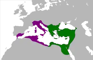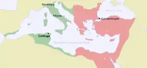 | 533–554 | Полководці Юстиніана відвойовують Північну Африку та Італію від вандалів і остґотів. |