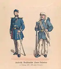 Не зважаючи на відносно велику чисельність військ, Бразилія не підготувалась до війни. Її армія була погано організована. Війська, використані в Уругваї, складалися головним чином із загонів гаучо і деяких частин Національної гвардії. У зв'язку з цим бразильські частини, що билися в Парагвайській війні, не були професійними, а комплектувалися добровольцями, так званими «добровольцями Батьківщини» (порт. Voluntários da Pátria). Серед них було багато рабів, яких надіслали фермери. Кавалерія формувалась з Національної гвардії провінції Ріу-Гранді-ду-Сул.
