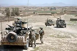 ![]() За годинниковою стрілкою від верхнього лівого кута: Королівська морська піхота під час прочісування в провінції Гільменд; американські військові у бою з Талібаном у провінції Кунар; солдат Афганської національної армії спостерігає з даху позашляховика «Хаммер»; спільний афгансько-американський патруль взимку у провінції Логар; Канадські артилеристи ведуть вогонь з гаубиці M777 у провінції Гільменд; афганський солдат на позиції у провінції Парван; британські війська в готовності до завантаження на борт Boeing CH-47 Chinook (Операція «Чорний Принц») За годинниковою стрілкою від верхнього лівого кута: Королівська морська піхота під час прочісування в провінції Гільменд; американські військові у бою з Талібаном у провінції Кунар; солдат Афганської національної армії спостерігає з даху позашляховика «Хаммер»; спільний афгансько-американський патруль взимку у провінції Логар; Канадські артилеристи ведуть вогонь з гаубиці M777 у провінції Гільменд; афганський солдат на позиції у провінції Парван; британські війська в готовності до завантаження на борт Boeing CH-47 Chinook (Операція «Чорний Принц») | |||||||||