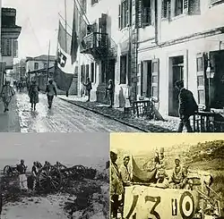 ![]() За годинниковою стрілкою зверху донизу: італійська військова база; албанські солдати на позиціях; гармати, які захопили албанці За годинниковою стрілкою зверху донизу: італійська військова база; албанські солдати на позиціях; гармати, які захопили албанці | |||||||
