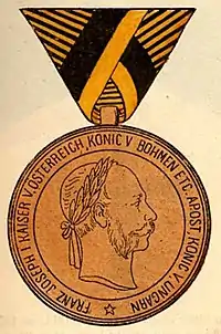 Військову медаль імператор Франц Йосиф І затвердив 2 грудня 1873 р. Вона призначалась, як пам’ятна медаль , для військовиків, які були на службі з дати його коронації (2 грудня 1848 р.). Проте, початкова пам’ятна медаль пізніше почала вручатись і за участь в інших військових опареціях. Загалом було три хвилі нагородження Військовою медаллю: