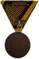 Медаль носилась на трикутній колодці, шириною 40 мм. Стрічка до медалі була комбінованою, з чорного та жовтого кольорів (австрійські імперські барви) [3].