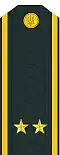 | Українське звання | Молодший лейтенант | Лейтенант | Старший лейтенант | Капітан-лейтенант | Капітан III рангу | Капітан II рангу | Капітан I рангу | Контр-адмірал | Віце-адмірал | Адмірал | |