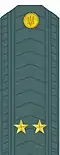 | NATO equivalent | junior lieutenant | lieutenant | senior lieutenant | captain | major | lieutenant colonel | colonel | major general | lieutenant general | colonel general | general of the army |