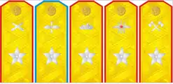 | Військові звання | Генерал-майор | Генерал-лейтенант | Генерал-полковник | Генерал армії | Маршал роду військ | Головний маршал роду військ | Маршал Радянського Союзу | Генералісимус Радянського Союзу |