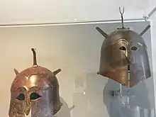 - Апуло-коринфський шолом — різновид корифського, застосовувався грецькими колоністами в Італії